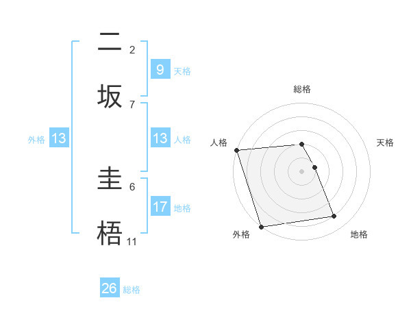 二坂 圭梧さんの外格は13画の5点!