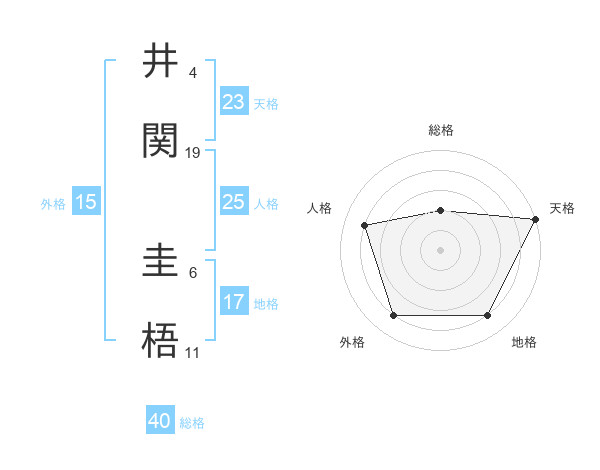 井関 圭梧さんを姓名の画数から五運を鑑定