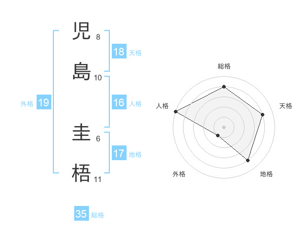 児島 圭梧さんの総格は35画の4点!