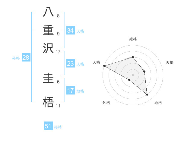 八重沢 圭梧さんの総格は51画の3点!