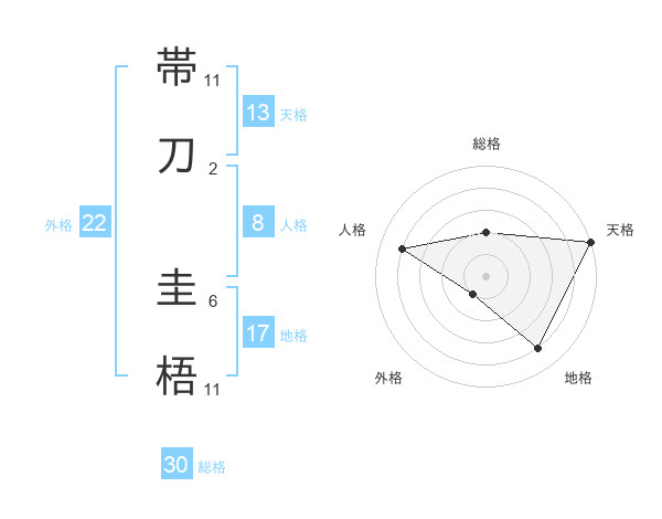帯刀 圭梧さんの外格は22画の1点!