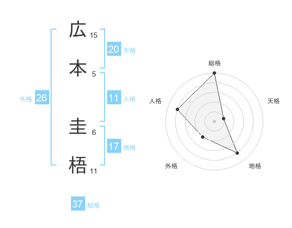 広本 圭梧さんを姓名の画数から五運を鑑定