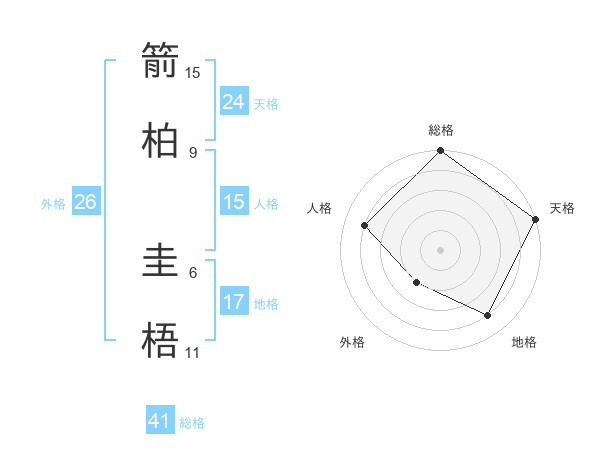 箭柏 圭梧さんを姓名の画数から五運を鑑定
