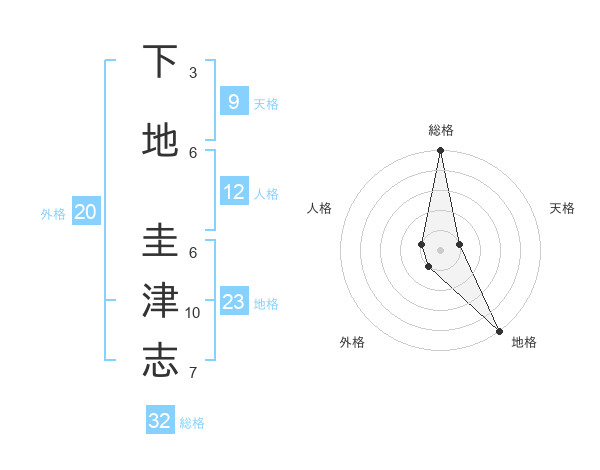 下地 圭津志さんを姓名の画数から五運を鑑定