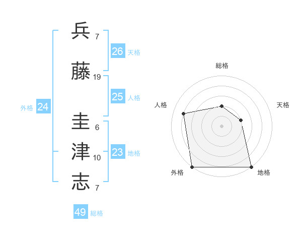 兵藤 圭津志さんの総格は49画の2点!