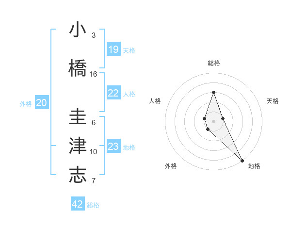 小橋 圭津志さんを姓名の画数から五運を鑑定