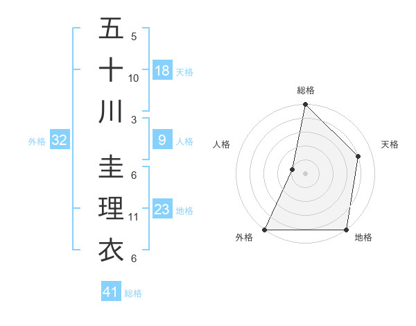 五十川 圭理衣さんを姓名の画数から五運を鑑定