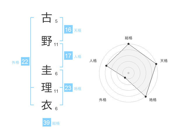古野 圭理衣さんを姓名の画数から五運を鑑定