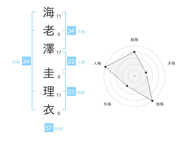 海老澤 圭理衣さんを姓名の画数から五運を鑑定