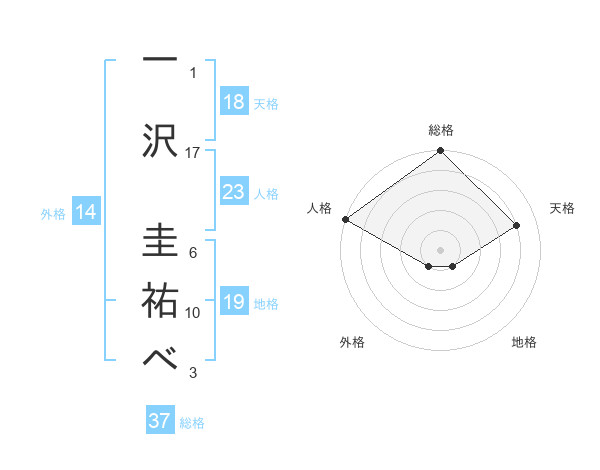 一沢 圭祐ベさんを姓名の画数から五運を鑑定