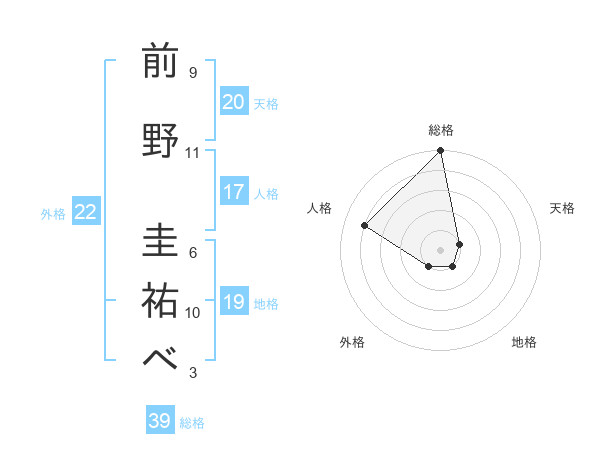 前野 圭祐ベさんを姓名の画数から五運を鑑定