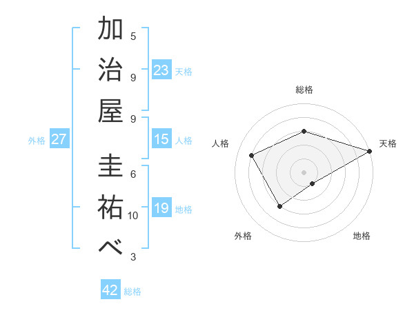 加治屋 圭祐ベさんを姓名の画数から五運を鑑定