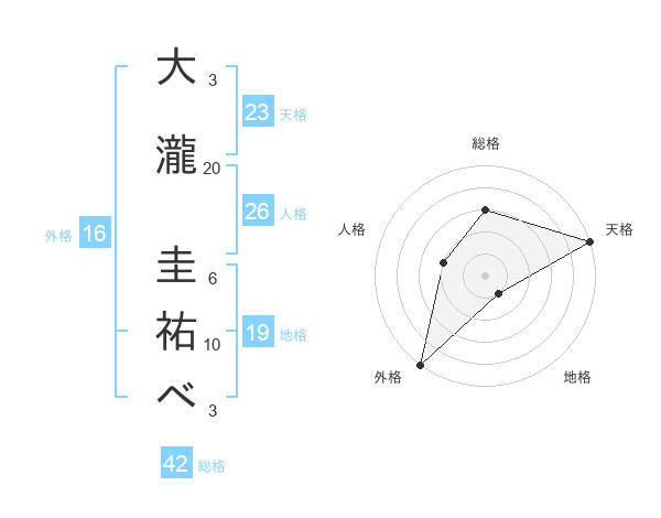 大瀧 圭祐ベさんの天格は23画の5点!