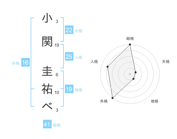 小関 圭祐ベさんを姓名の画数から五運を鑑定