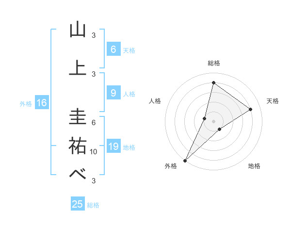 山上 圭祐ベさんを姓名の画数から五運を鑑定
