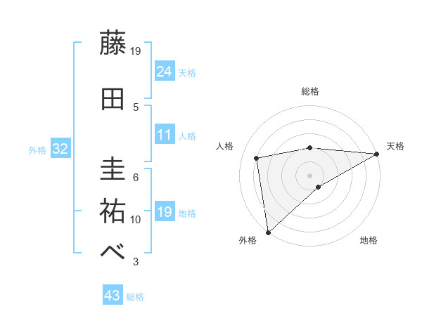 藤田 圭祐ベさんを姓名の画数から五運を鑑定