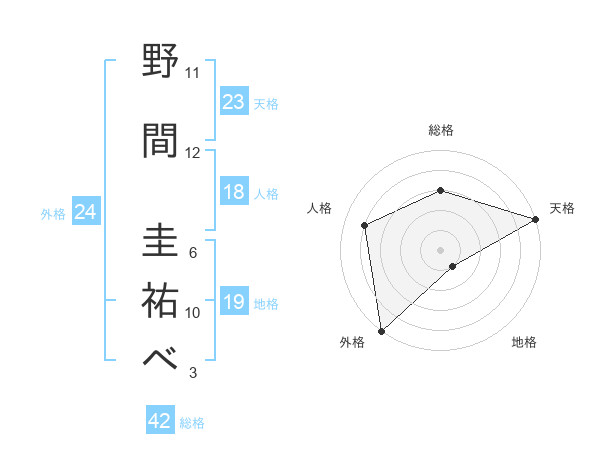 野間 圭祐ベさんを姓名の画数から五運を鑑定