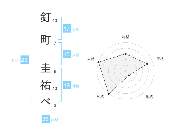 釘町 圭祐ベさんを姓名の画数から五運を鑑定