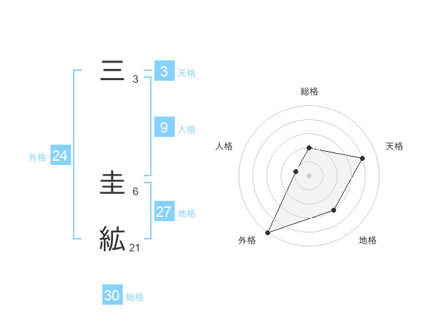 三 圭絋さんの総格は30画の2点!
