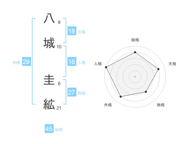 八城 圭絋さんを姓名の画数から五運を鑑定