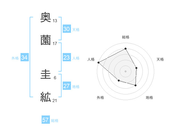 奥薗 圭絋さんを姓名の画数から五運を鑑定