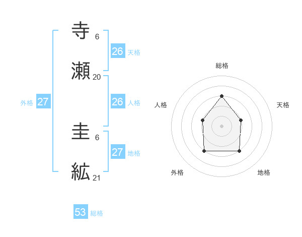 寺瀬 圭絋さんの天格は26画の2点!