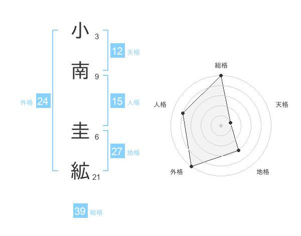 小南 圭絋さんの外格は24画の5点!