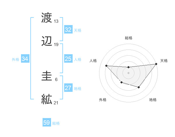 渡辺 圭絋さんの天格は32画の5点!