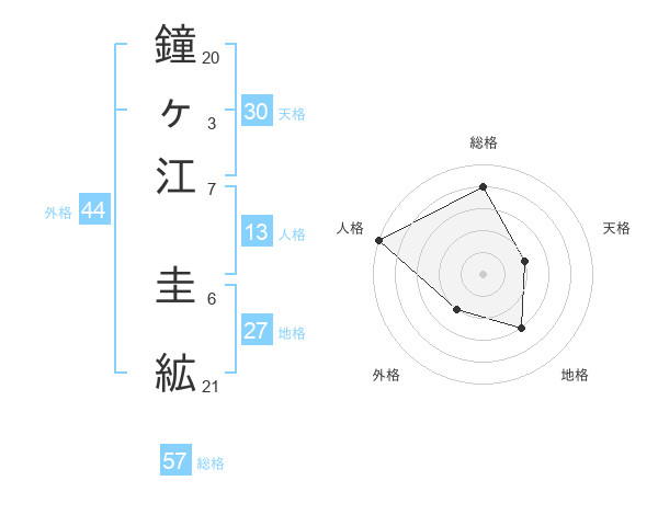 鐘ヶ江 圭絋さんの総格は57画の4点!