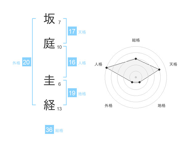 坂庭 圭経さんの外格は20画の1点!