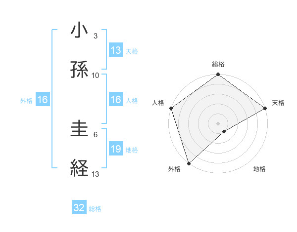 小孫 圭経さんの天格は13画の5点!