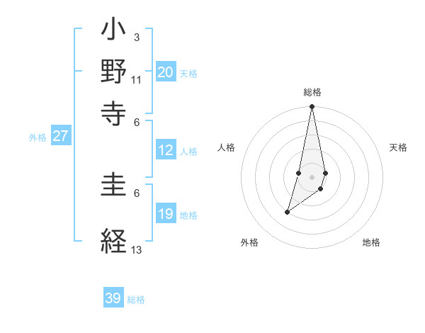小野寺 圭経さんを姓名の画数から五運を鑑定