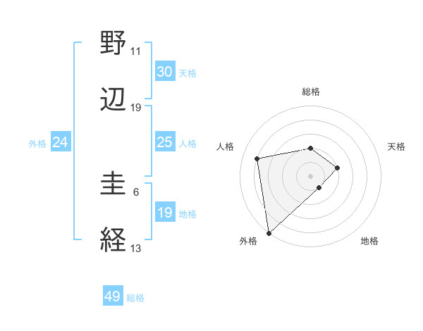 野辺 圭経さんを姓名の画数から五運を鑑定