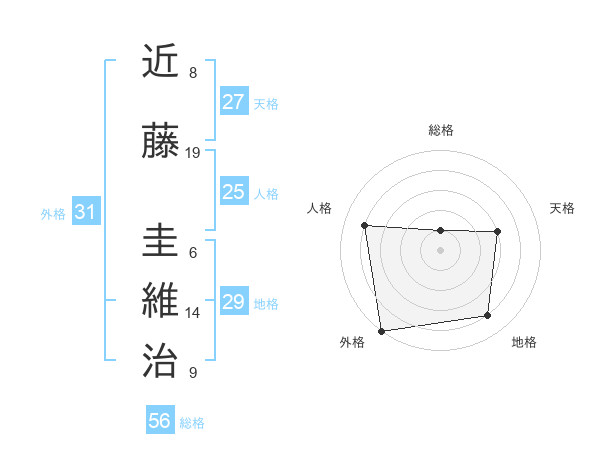 近藤 圭維治さんを姓名の画数から五運を鑑定