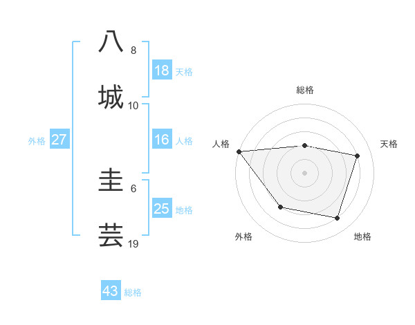 八城 圭芸さんの天格は18画の4点!