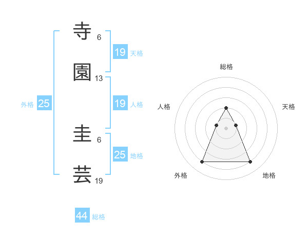 寺園 圭芸さんの総格は44画の2点!