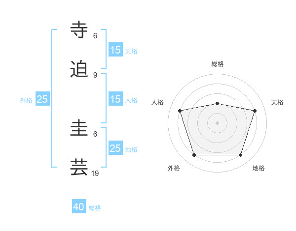 寺迫 圭芸さんの天格は15画の4点!