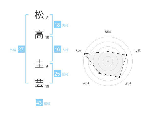 松高 圭芸さんの総格は43画の2点!