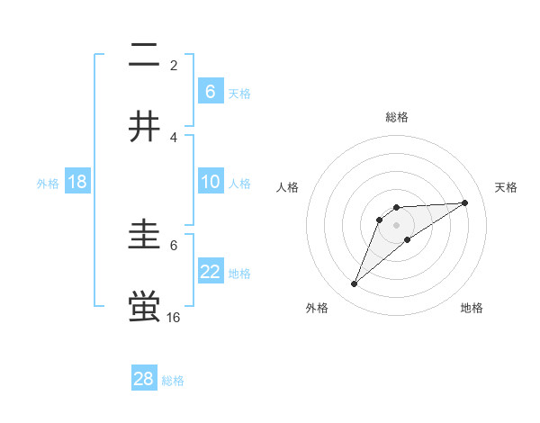 二井 圭蛍さんを姓名の画数から五運を鑑定