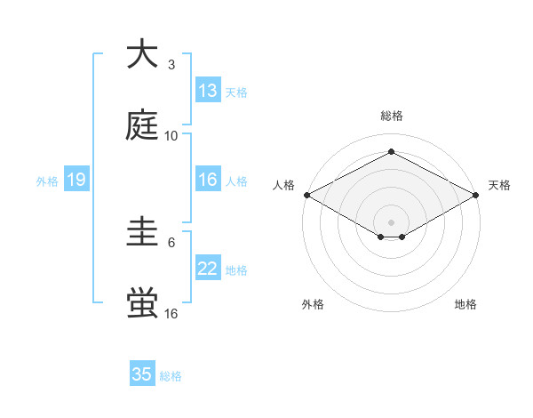 大庭 圭蛍さんの総格は35画の4点!