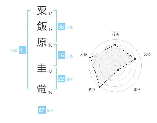 粟飯原 圭蛍さんを姓名の画数から五運を鑑定