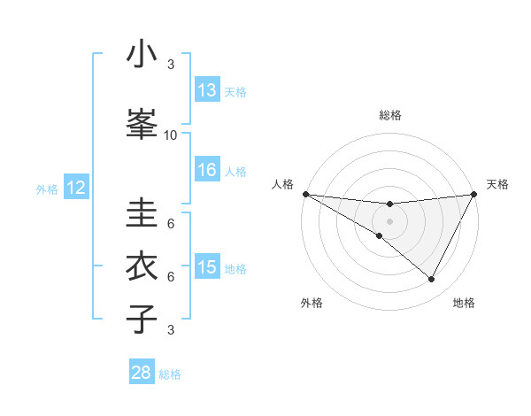 小峯 圭衣子さんを姓名の画数から五運を鑑定