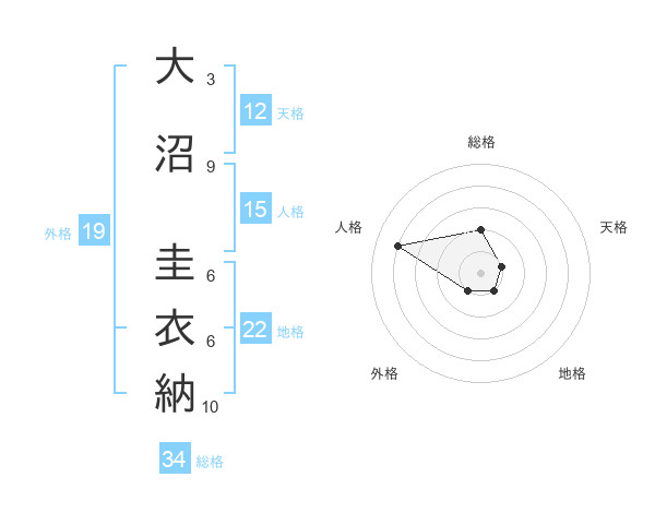 大沼 圭衣納さんを姓名の画数から五運を鑑定