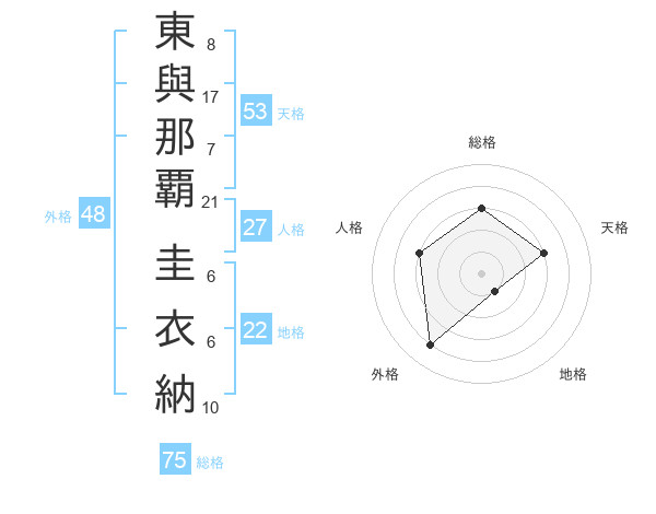 東與那覇 圭衣納さんを姓名の画数から五運を鑑定