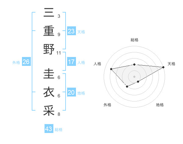 三重野 圭衣采さんを姓名の画数から五運を鑑定