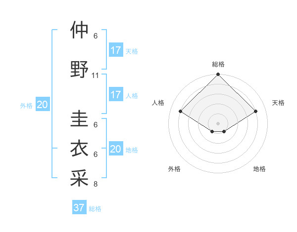 仲野 圭衣采さんの総格は37画の5点!