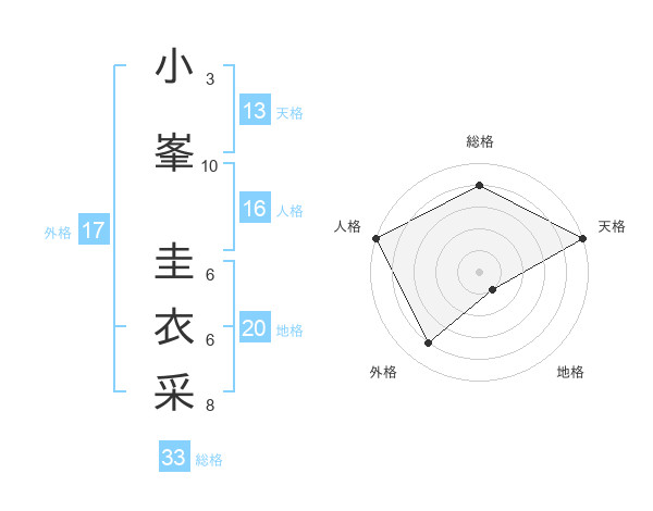 小峯 圭衣采さんを姓名の画数から五運を鑑定