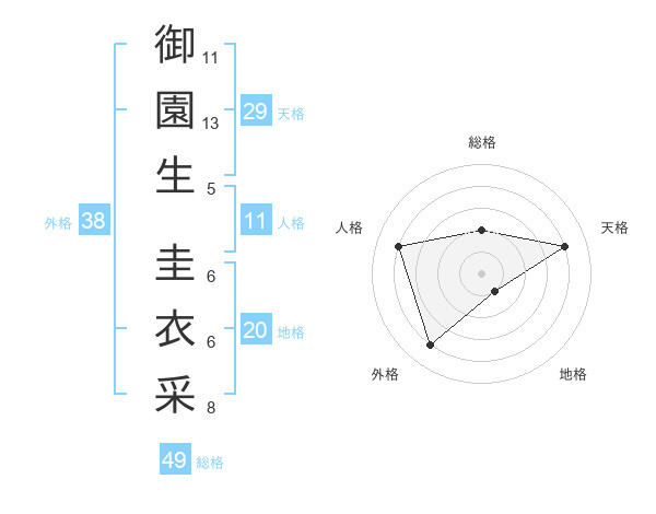 御園生 圭衣采さんを姓名の画数から五運を鑑定