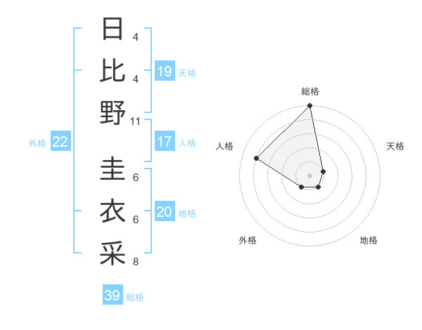 日比野 圭衣采さんの天格は19画の1点!
