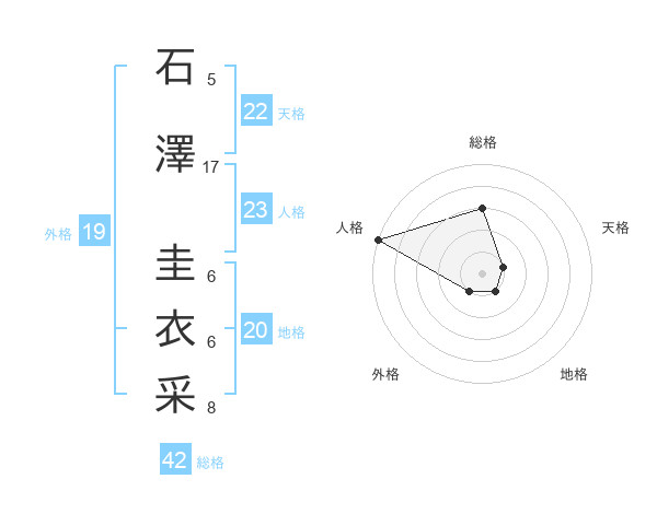 石澤 圭衣采さんを姓名の画数から五運を鑑定